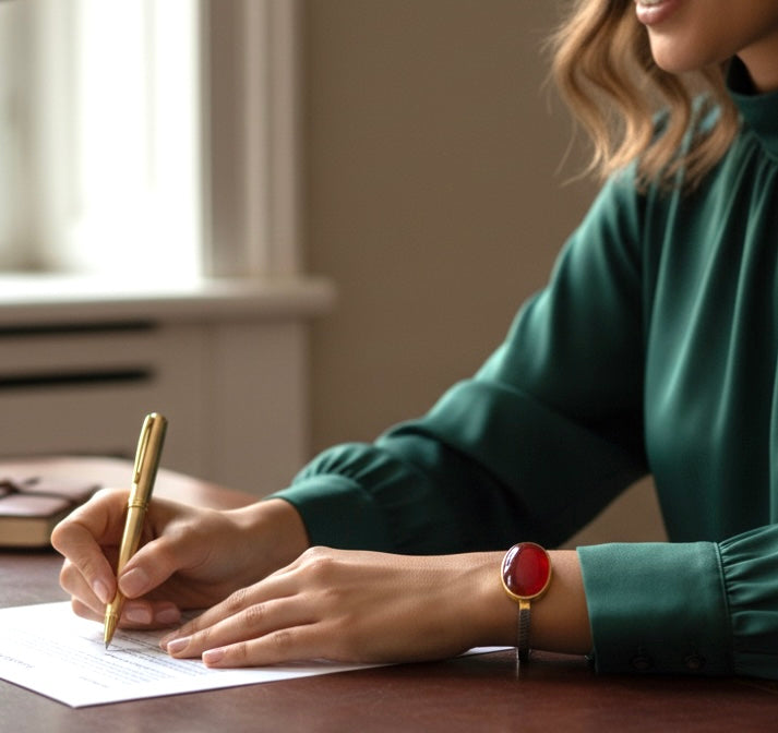 This striking handmade cuff bracelet features a bold, oval shaped carnelian stone set in a high-polished gold-plated bezel. The band is crafted from sterling silver with a subtly textured finish, adding a refined, organic touch. A perfect balance of elegance and strength, this piece is designed to stand out, whether worn solo or stacked.